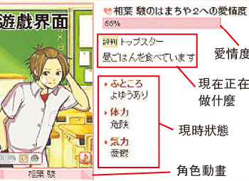 為勾起會員“青澀的初戀感覺”,整個虛擬環(huán)境設定在某所中學校園里。用戶登入之后,可以從4名卡通風格的男角中,選一人作為“網上男朋友”,在校園內談情說愛。4個男生各有特色,包括高材生型、陽光型、壞男孩型和教師型。這些虛擬男友由多名男聲優(yōu)配音,用家如果想和“男友”增進感情,就要多登入該網,然后通過對話和其它虛擬活動,來令“愛情度”增加。