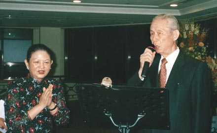 王永慶愛(ài)唱歌、特別是閩南語(yǔ)老歌。九十歲壽宴時(shí),他聽(tīng)到《桃花泣血記》,高興地主動(dòng)拿起麥克風(fēng)高歌一曲。聯(lián)合報(bào)系資料照片
