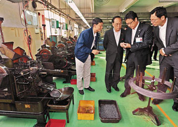 曾蔭權(quán)12日與香港5大商會(huì)代表舉行早餐會(huì),聽取他們對(duì)企業(yè)方面的意見,下午即前往東莞實(shí)地考察當(dāng)?shù)馗凵痰那闆r。他在東莞市長(zhǎng)李毓全的陪同下,先到東莞鳳崗鎮(zhèn)一間五金制品廠參觀,該港資企業(yè)于1977年成立,聘有千多名員工,接著與約20名珠三角港資企業(yè)代表舉行座談會(huì),進(jìn)一步了解他們現(xiàn)時(shí)面對(duì)的營(yíng)運(yùn)困難。返回香港后,他于傍晚舉行記者會(huì)。