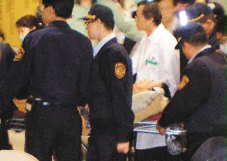 為了避免陳水扁曝光,救護車直接倒車進入急診處把他放下。滿臉胡渣的陳水扁,躺在救護車的推床上,身體用橘黃色被單蓋著,手、腳未上戒具。他戴著眼鏡躺在推床上,沒有慷慨激昂的高分貝呼喊,他始終緊閉雙眼,不發(fā)一語。