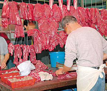“毒牛肉”充斥市面,無良肉商罔顧市民健康,出售由冷藏充新鮮及含防腐劑的“假鮮牛肉”。該報(bào)追查一間位于馬鞍山一街市內(nèi)的牛肉檔,該店為街市內(nèi)唯一一間牛肉店,屬獨(dú)市生意,加上本月初才獲消費(fèi)者委員會(huì)“每周精明格價(jià)”網(wǎng)內(nèi),被列為該區(qū)牛肉價(jià)格最低的肉檔,揭發(fā)所賣的都為“蠱惑牛肉”。