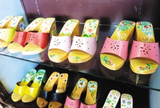 宜蘭縣蘇澳鎮(zhèn)白米木屐村把傳統(tǒng)的木屐改良,不但木屐顏色變亮麗,彩繪各種美麗圖案,穿起來又涼爽,夏天到了,很多女孩子特別喜歡,“大家都將木屐當(dāng)做美麗的涼鞋!”木屐村導(dǎo)覽組組長(zhǎng)蕭玉珠說。