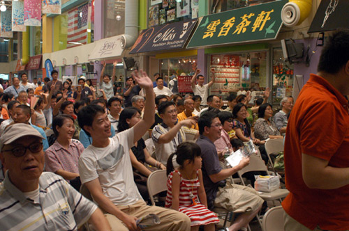 當(dāng)天下午一時(shí)許,法拉盛購物中心的大堂內(nèi)已經(jīng)聚集了數(shù)百位華人球迷,座無虛席,二樓的走廊上也站了不少觀眾,其中以男性觀眾為主,也有婦女和兒童。某廣告公司在這里主辦了民眾一起看世界杯的活動(dòng),邀請(qǐng)了李昌林、譚琳等華文媒體的專業(yè)主持人在現(xiàn)場解說,觀眾還可以參加抽獎(jiǎng),大獎(jiǎng)是紐約至上海的往返機(jī)票,F(xiàn)場的舞臺(tái)上樹起了大屏幕,會(huì)場周圍還有數(shù)臺(tái)小電視機(jī)。隨著比賽的開始,進(jìn)入會(huì)場觀戰(zhàn)的人越來越多。在加時(shí)賽的第26分鐘,西班牙攻入唯一一球,引起了全場的沸騰。據(jù)主辦方介紹,當(dāng)天來現(xiàn)場的觀眾多達(dá)千人,而前一天半決賽的觀眾也有700余人。