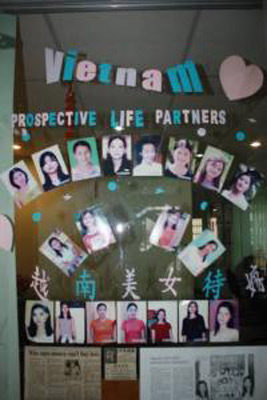 根據(jù)檳城專門介紹越南、柬埔寨、印度尼西亞及中國(guó)新娘的婚姻介紹所,約20%的專業(yè)人士通過介紹所找外國(guó)新娘,當(dāng)中不乏工程師、經(jīng)理或商人。在外埠新娘,越南女子最受歡迎,因?yàn)樗齻儽徽J(rèn)為還很“單純及天真”。