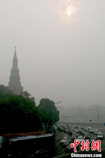 據(jù)當?shù)丨h(huán)保單位檢測,近日莫斯科空氣污染的程度已經(jīng)超出正常值的3倍,處于嚴重污染狀態(tài)。衛(wèi)生部門官員對民眾發(fā)出了健康警示,居民外出要戴口罩,在室內(nèi)要掛濕毛巾,以粘住煙霧中的粉塵顆粒并凝結(jié)煙流。
