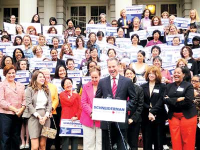 中新網9月14日電 據美國《星島日報》報道,9月14日紐約州初選臨近,今年選舉中以檢察長一職的選情最為激烈,據Siena研究所11日所公布的民調,目前民主黨兩位主要參選人史樹德(Eric Schneiderman)僅以2%領先韋嘉蓮(Kathleen Rice),因此鹿死誰手還是未知之數。兩人各自都積極在華人社區(qū)打選戰(zhàn),至12日仍在作最后沖刺。