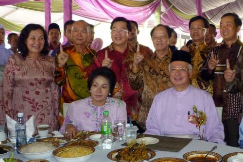 中新網(wǎng)9月19日電 據(jù)馬來西亞《星洲日報》報道,馬來西亞首相納吉18日回到選區(qū)北根舉辦開齋節(jié)門戶開放活動,華總會長方天興率領(lǐng)彭亨華人社團聯(lián)合會及彭亨中華工商會眾領(lǐng)袖一起出席,并贈送月餅予首相,象征月圓、人圓、全民團結(jié)!