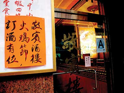 華埠東百老匯的敬賓酒樓雖然近日才貼出火雞節(jié)宴席預訂告示,但業(yè)者介紹預訂活動早在一年前便開始,宴席也已被訂走大半。