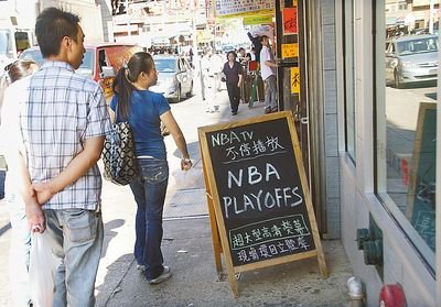 NBA季后賽一個(gè)月以來(lái),特別是在晚餐時(shí)間,華埠許多中餐館在晚餐時(shí)間將電視畫面固定在體育頻道,有的大酒樓也不例外。顧客在餐廳停留的時(shí)間增加了,消費(fèi)金額也會(huì)有所增多,業(yè)者既賺人氣,又有買氣。