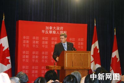 渥太華當(dāng)?shù)貢r(shí)間二〇〇六年六月二十二日下午三時(shí),加拿大總理斯蒂芬·哈珀在加議會(huì)發(fā)表正式聲明,代表政府就人頭稅問題向全加華人道歉。