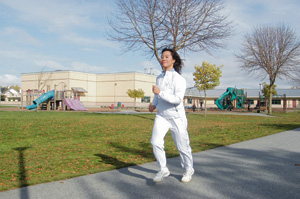 岑潔儒說(shuō),7月底接到通知時(shí),雖還沒(méi)最后確定路程和地點(diǎn),但她已開始自我訓(xùn)練。報(bào)名表上提到,跑步路程在200米到400米之間,但現(xiàn)在溫冬奧籌委會(huì)確認(rèn)她傳火炬路程是300米,火炬長(zhǎng)90厘米,重量3.5磅。雖然VANOC指明傳遞方式除了慢跑,也可以用走或快步走方式,一切以火炬手的體能條件做自我考慮,但岑潔儒堅(jiān)持跑完全程。她笑著說(shuō),還沒(méi)老到要用“走路”方式,不過(guò),她最大的擔(dān)心是火炬重量。