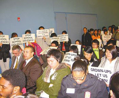 南費城高中亞裔學(xué)生、家長和華埠小區(qū)領(lǐng)袖百余人,9日下午手持“是誰讓它發(fā)生”等抗議標(biāo)語,游行至教育局參加公聽會,游行者高喊“停止學(xué)校暴力”、“給我安全教育環(huán)境”,抒發(fā)壓抑多時的不滿。