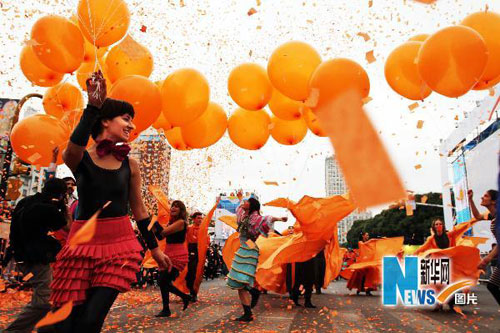 阿根廷的80多個(gè)移民團(tuán)體參加了當(dāng)天的游行。來自世界各地的4000余名移民和他們的后代身著傳統(tǒng)服飾,或攜帶祖籍國(guó)特產(chǎn),或表演傳統(tǒng)文藝,載歌載舞地穿過位于市中心的七月九日大街。