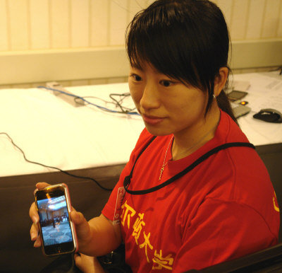 在中國(guó)代表團(tuán)新聞中心協(xié)助工作的卡爾頓大學(xué)留學(xué)生姜瑛,在會(huì)見(jiàn)結(jié)束后沖進(jìn)新聞中心,興奮地叫道:“我看到主席了,他離我很近,非常親切,沒(méi)有一點(diǎn)架子!彼f(shuō),胡主席與站在第一排的學(xué)生握手,當(dāng)胡主席要離開(kāi)時(shí),同學(xué)們大聲地表達(dá)問(wèn)候,他還特意停步向同學(xué)招手。姜瑛用手機(jī)拍下,并與新聞中心的同伴們分享。(翁曉青)