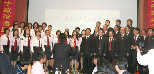 聯(lián)歡會上,米蘭華僑華人婦女會、米蘭第一中文學(xué)校、米蘭愛琴海樂隊(duì)及留學(xué)生代表等表演了歌舞、器樂、書法等節(jié)目,用各種形式表達(dá)對祖國60華誕的衷心祝賀!最后,米蘭華人合唱團(tuán)合唱《沒有共產(chǎn)黨就沒有新中國》和《歌唱祖國》,全體來賓與合唱團(tuán)一同高歌,唱出了全體旅意華人的心聲。