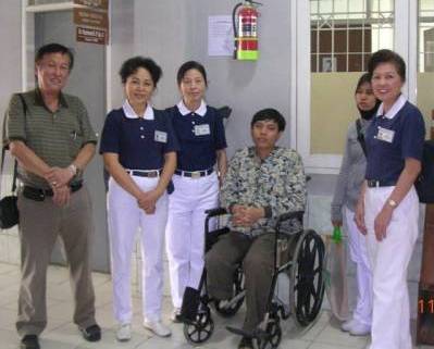 慈濟(jì)志工包括Asikin張日興、許祿發(fā)、張佩玲、王麗烔與Titip,他們?cè)诎倜χ谐榭张阃珹di進(jìn)行復(fù)診。