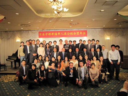 中新網(wǎng)12月16日電 據(jù)日本新華僑報(bào)網(wǎng)報(bào)道,12月13日,日本中部華僑華人聯(lián)合總會(huì)2009年度忘年會(huì)在三重縣合歡鄉(xiāng)酒店舉行。中部地區(qū)13個(gè)僑團(tuán)、3家中資企業(yè)及各界華僑華人代表80多人歡聚一堂,中國駐名古屋張立國總領(lǐng)事出席活動(dòng)并講話。