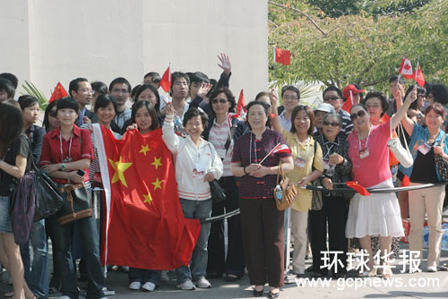 溫哥華老年華人協(xié)會創(chuàng)會會長李保忠對該報記者說,他是一清早就從高貴林的家中趕來酒店!霸谥袊鴳c祝建國六十周年前夕,我們迎來了祖國的親人,我覺得非常激動,令人難忘!崩畋V艺f,“祖國強大了,我們?nèi)A人在海外什么都不怕!