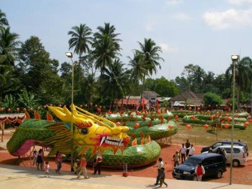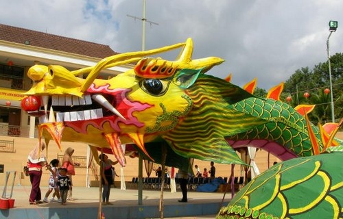 當(dāng)晚約有數(shù)千民眾來(lái)到邦加島的北部城市烈港的Kampung Kenanga(Chit Fun),進(jìn)入當(dāng)?shù)豗PK學(xué)校的廣場(chǎng),觀看熱烈的舞獅表演。該長(zhǎng)龍展示,同時(shí)長(zhǎng)龍身上敷貼了2萬(wàn)個(gè)小年糕。