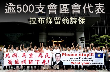 中新網(wǎng)10月15日電 據(jù)馬來西亞《星洲日報(bào)》報(bào)道,馬華支會(huì)和區(qū)會(huì)逾500名代表,15日拉起13條巨幅布條表達(dá)心聲,以期力挽總會(huì)長翁詩杰留下,繼續(xù)領(lǐng)導(dǎo)馬華進(jìn)行改革。