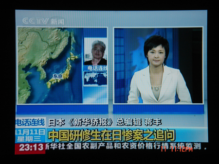 中新網(wǎng)11月13日電 據(jù)日本新華僑報網(wǎng)報道,11月8日,日本熊本縣發(fā)生中國農(nóng)業(yè)研修生王寶泉自殺以及與此相關(guān)的命案。《日本新華僑報》作為華文媒體在第一時間進(jìn)行了報道,經(jīng)過中國門戶網(wǎng)站轉(zhuǎn)載后,引起強烈反響。11月11日晚上,中國中央電視臺新聞頻道24小時節(jié)目對該報總編輯蔣豐作了連線采訪。
