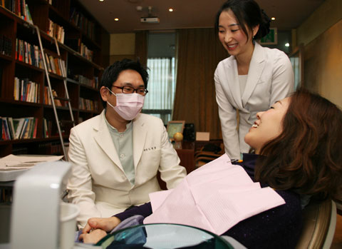 中新網(wǎng)1月7日電 據(jù)韓國《朝鮮日報》報道,5日,韓國首爾江南區(qū)清潭洞的牙科11層!鞍 珱Q定治療了嗎?牙的哪個部分不合您的心意?”院長No Jeong-jun向身穿紫色針織T恤躺在診療臺上的日本人患者問道。站在旁邊的院方咨詢服務師當即做了翻譯。患者說“我的牙歪歪斜斜地太不整齊了”。她是3日為接受牙齒貼瓷整形治療以4天日程訪問韓國的日本主婦崎本。