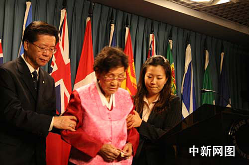 中新網(wǎng)渥太華11月27日電(韓瀟)來(lái)自中國(guó)、韓國(guó)、菲律賓和荷蘭的四名年逾八旬的“慰安婦”幸存者今天在渥太華國(guó)會(huì)山舉行聽證會(huì),控訴日本政府在二戰(zhàn)中強(qiáng)迫婦女充當(dāng)“慰安婦”的罪行,并呼吁加拿大敦促日本承認(rèn)戰(zhàn)爭(zhēng)罪行,向“慰安婦”正式道歉和賠償。據(jù)悉,這是加拿大歷史上首次有二戰(zhàn)“慰安婦”在國(guó)會(huì)作證。