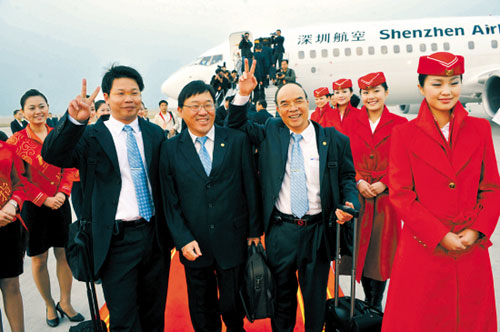 海峽兩岸實(shí)現(xiàn)全面三通,深圳航空的首批旅客見證了歷史。