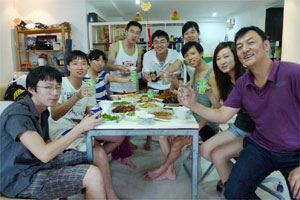年三十下午4:00左右,趙建國來到位于裕廊東的朋友家中,其他幾個朋友也陸陸續(xù)續(xù)趕到。大家都帶了自己拿手菜的基本材料,開始在廚房里忙活起來。趙建國不用做菜,他主要負(fù)責(zé)包餃子,以及年夜飯后洗碗等后續(xù)工作。