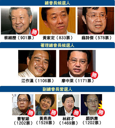 至于引起10角大混戰(zhàn)的副總會(huì)長(zhǎng)職,隸屬蔡細(xì)歷派,尋求蟬聯(lián)的黃燕燕此次以高票成功捍衛(wèi)原職,也是最高票副總會(huì)長(zhǎng)。而選前被視為“左右縫源”的前副總會(huì)長(zhǎng)林祥才則位居第二,黃家定派的曹智雄及翁詩(shī)杰派的顏炳壽則同樣雙雙擠入副總會(huì)長(zhǎng)行列,而顏炳壽的入圍更被視為是“黑馬”。