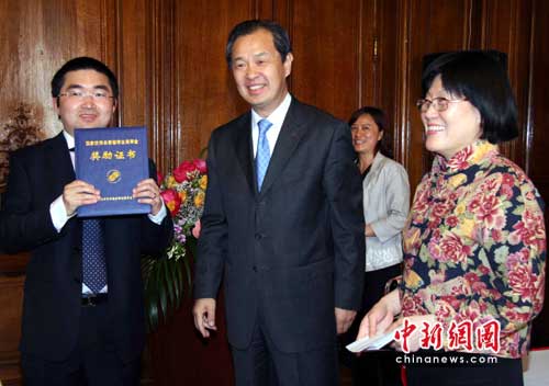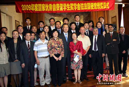 中新網(wǎng)巴黎6月4日電(記者 衛(wèi)中)2009年度中國優(yōu)秀自費(fèi)留學(xué)生獎(jiǎng)學(xué)金頒獎(jiǎng)儀式4日下午在中國駐法國大使館舉行,20位留法學(xué)子獲得這一殊榮。