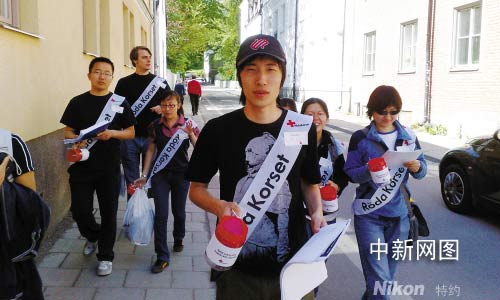 她得知瑞典第四電視臺(tái)在二十四日為中國(guó)和緬甸發(fā)起電視募捐,她知道可以做一些事情了!拔矣X得應(yīng)該讓更多的瑞典人知道在中國(guó)正在發(fā)生的事情,這樣電視募捐的時(shí)候,才會(huì)有人來捐錢!彼f,她計(jì)劃上街去派發(fā)傳單。這個(gè)想法得到同班中國(guó)留學(xué)生李悅和王曜鋒的支持。他們連夜設(shè)計(jì)的海報(bào)悲愴而簡(jiǎn)潔:“五萬人死了,三萬人失蹤,五百多萬人無家可歸,地震災(zāi)民需要你的幫助”。