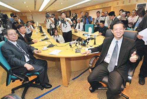 林冠英是在州元首和州元首夫人面前宣誓就任,他是和所領導的民主行動黨陣容,在第十二屆全國大選中一舉囊括所有競選的7國19州后,與人民公正黨在檳州組成新政府。人民公正黨一共贏得4國9州席位。