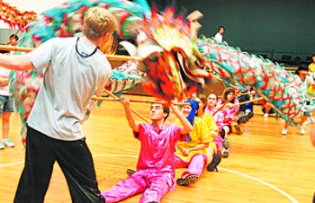 鑼鼓聲中,湖南涉外經(jīng)濟學(xué)院舞龍舞獅隊千變?nèi)f化的動作,讓美國學(xué)生感到震撼,也不忘嘗試一番中國龍的韻味。而南棍和太極等中國功夫更讓美國學(xué)生興致高漲。期間,美國學(xué)生擺弄起中國的筆墨紙硯,還真是有模有樣。
