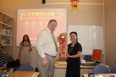 比賽共決出6位優(yōu)勝者,由孔子學院中方院長李遠征為獲獎選手頒獎——典雅的中國仕女竹掛簾和印有孔子學院字樣的購物兜。在頒獎儀式上,李遠征盛贊此次圍棋比賽對促進中芬友誼的意義,并希望芬蘭人民通過孔子學院的活動和教學更多了解中國。
