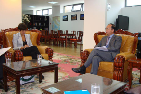 中新網(wǎng)9月28日電 據(jù)意大利歐聯(lián)通訊社報道,日前,中國駐意大利使館丁偉大使接受意大利當(dāng)?shù)孛襟w《信使報》記者博齊專訪,向意大利記者介紹了意大利中國文化年的籌備情況,以及文化年活動的相關(guān)內(nèi)容。并應(yīng)詢記者的請求,就中國經(jīng)濟發(fā)展形勢、人權(quán)現(xiàn)狀以及中美關(guān)系做了介紹。