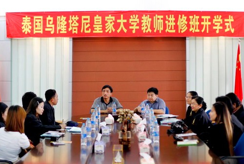中新網(wǎng)10月11日電 據(jù)華僑大學(xué)華文學(xué)院網(wǎng)站消息,10月11日上午,泰國烏隆塔尼皇家大學(xué)教師團(tuán)開學(xué)式在華僑大學(xué)華文學(xué)院一號樓會議室舉行。華文學(xué)院副院長陳旋波、培訓(xùn)部主任李金鈔等出席了開學(xué)式。