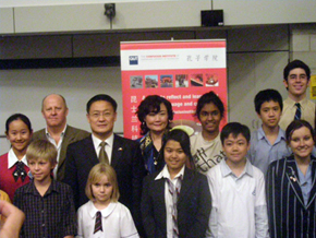 任共平在致辭時(shí)表示,很高興看到昆州學(xué)生如此踴躍地學(xué)習(xí)中文并參加中文演講大賽,祝賀獲獎(jiǎng)?wù)呷〉玫暮贸煽儭K赋,學(xué)習(xí)中文既可以為自己增加一門語言技能,也能打開了解中國歷史和文化的窗口,建立起相互溝通、增進(jìn)中澳兩國人民友誼的橋梁。他表示,各位學(xué)生在慶祝中華人民共和國建國60周年之際參賽、獲獎(jiǎng),具有特殊意義,希望同學(xué)們繼續(xù)努力。