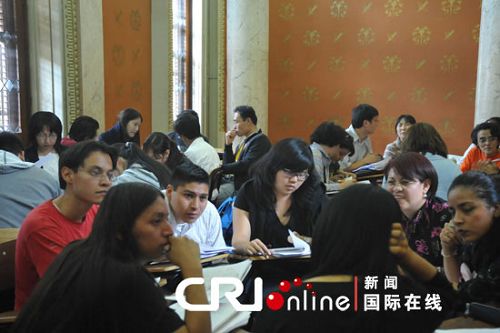 墨西哥國立自治大學(xué)孔子學(xué)院院長阿科斯塔表示,隨著“漢語熱”和“中國風(fēng)”近年來在墨西哥的悄然興起,越來越多的墨西哥學(xué)生希望來到學(xué)院學(xué)習(xí)漢語,但目前學(xué)院僅僅有5名漢語教師,遠(yuǎn)遠(yuǎn)不能滿足現(xiàn)在學(xué)生的需求。所以現(xiàn)在需要培養(yǎng)墨西哥自己的漢語教師。阿科斯塔說:“因?yàn)楝F(xiàn)在我們也沒有很多老師,但是還有很多人想學(xué)習(xí)漢語,但是沒有老師怎么辦呢?所以我們需要培養(yǎng)我們自己的老師,墨西哥的老師,我覺得這樣我們可以滿足墨西哥人(學(xué)漢語)的要求。”