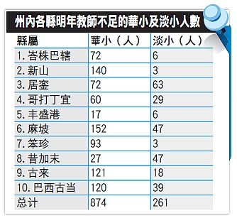 中新網(wǎng)12月4日電 據(jù)馬來(lái)西亞《星洲日?qǐng)?bào)》報(bào)道,大馬柔佛州華小明年將嚴(yán)缺874名教師,淡米爾小學(xué)也面對(duì)缺乏261名教師的問(wèn)題。