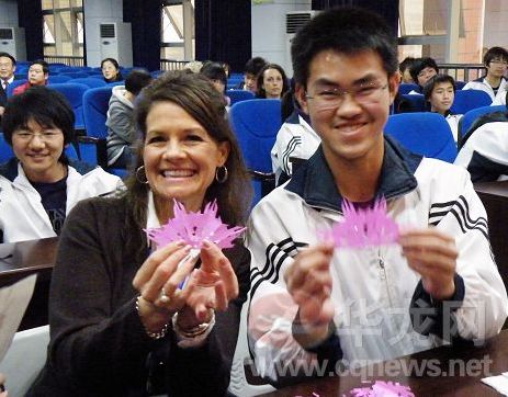 “中國最早的文字起源是什么?中國最早的文字為什么稱為甲骨文?”12月7日下午,2009“漢語橋——美國中小學(xué)校長訪華之旅:邁出新步”代表團(tuán)到位于渝北區(qū)的重慶市暨華中學(xué)校參觀訪問。9名美國中小學(xué)校長在與師生共同上課的過程中,深刻感受到了漢語的無窮魅力。