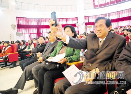 “天氣很冷啊!在這里怎么樣?”剛走進江門幼師音樂樓大門,亞歷山大領事就用印尼語問華文班的學生!疤鞖饫渚筒黄亮!”不知道是誰的回答,讓大家都一陣大笑。
