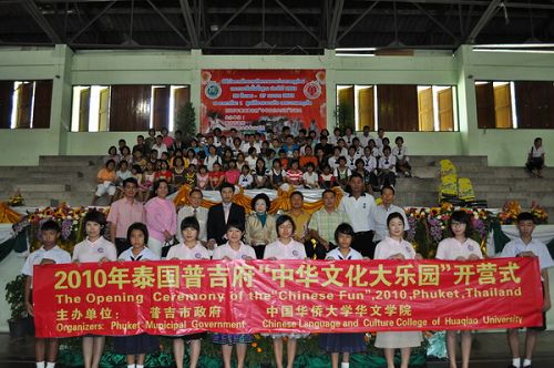 中新網(wǎng)3月23日電 據(jù)華僑大學(xué)網(wǎng)站消息,3月20日上午,由泰國普吉市政府、華僑大學(xué)華文學(xué)院主辦的“中華文化大樂園”普吉營開營儀式在普吉市活動中心舉行。泰國普吉市市長、副市長,華僑大學(xué)華文學(xué)院黨委書記趙明光,泰中農(nóng)業(yè)科技促進(jìn)會會長陳碧達(dá),及千余名學(xué)生及家長出席開營式。