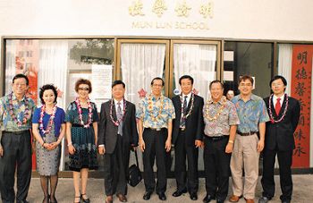 中新網(wǎng)5月11日電 據(jù)美國(guó)《世界日?qǐng)?bào)》報(bào)道,中國(guó)國(guó)僑辦講師團(tuán)一行五人日前在國(guó)僑辦行政處處長(zhǎng)田光華的帶領(lǐng)下訪問(wèn)位于檀香山的明倫中文學(xué)校,實(shí)地考察這所長(zhǎng)期在社區(qū)第一線堅(jiān)持華文教育的老僑校。(高振華 攝)