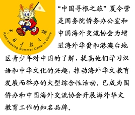 美國《僑報(bào)》記者吳健:美國華裔青少年參加“中國尋根之旅夏令營”的目的已不僅僅局限于簡單的開拓視野和尋根問祖,還包括幫助他們認(rèn)同文化身份和未來事業(yè)發(fā)展。