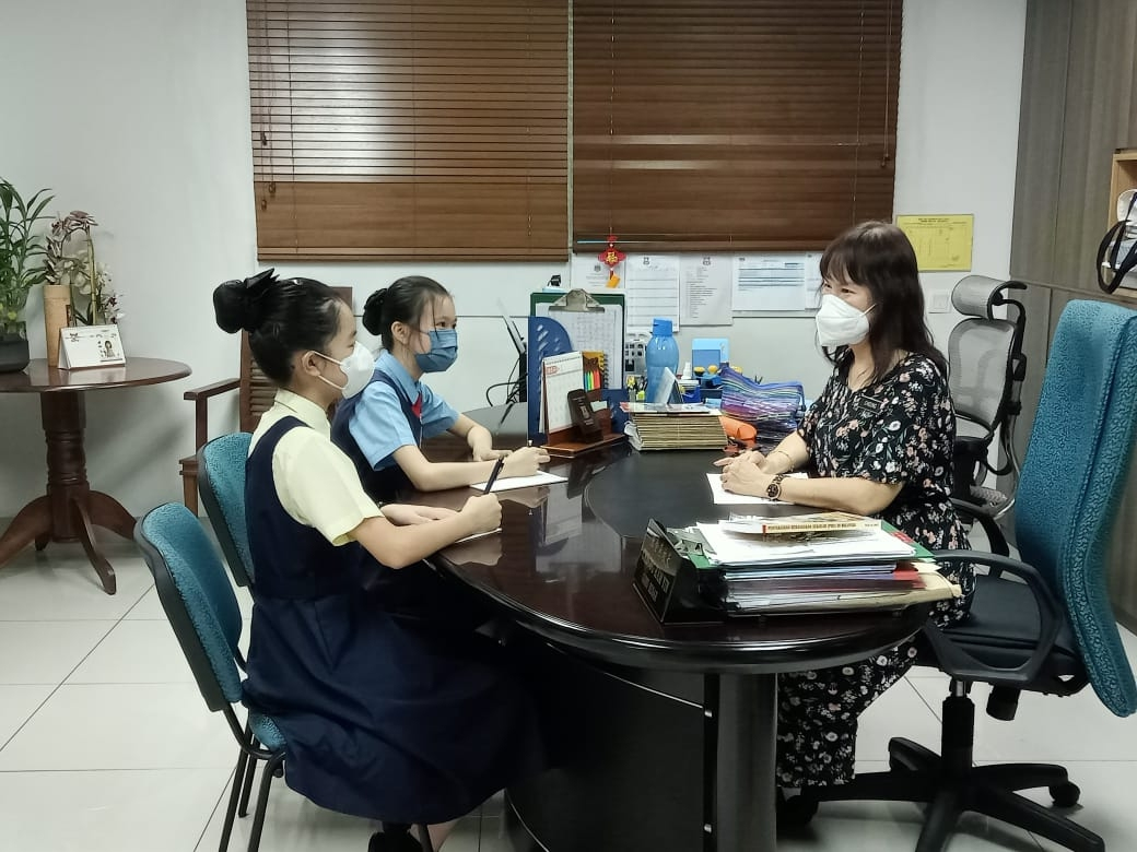 2022年7月4日下午一時(shí)半,吉隆坡坤成華小一校Z世代華星小記者第二期校園專訪正式開始。第二期校園專訪,徐瑀瞳同學(xué)和陳思穎同學(xué),通過小記者采訪室即谷歌視頻會議,連線對坤成華小一校的校長——張金燕校長進(jìn)行線上采訪。