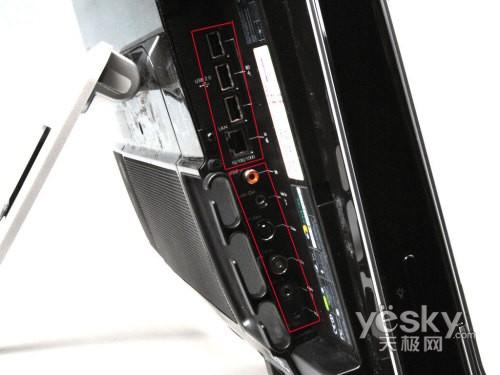 主機(jī)背部的“內(nèi)容”要比正面豐富的多,帶阻尼效果的支架占據(jù)了機(jī)身背部的大部分的空間,根據(jù)實(shí)際測試,該支架可以張開50度,滿足不同角度觀看主屏的需求。