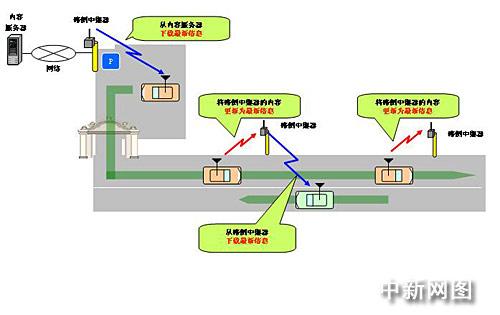 路側(cè)中繼器無需通過有線網(wǎng)絡(luò)與信息發(fā)送中心相連,路側(cè)中繼器的內(nèi)容可以根據(jù)車輛傳輸?shù)男畔⑦M(jìn)行最新信息更新。因此,無須敷設(shè)有線網(wǎng)絡(luò)所需的大筆費(fèi)用,只需設(shè)置具有DSRC車輛間通信裝置的路側(cè)中繼器的系統(tǒng),因此期待著減輕基礎(chǔ)設(shè)施構(gòu)筑費(fèi)用。