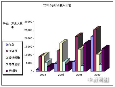 現(xiàn)在的情況是怎么樣呢?整個(gè)中國市場(chǎng)的網(wǎng)絡(luò)廣告投放額在增加,但以前那種一家獨(dú)大的情況不見了。更多的企業(yè)主體參與進(jìn)來了。從下面的網(wǎng)絡(luò)廣告TOP20各行業(yè)投入比較表中可以看到,在2006年,汽車已經(jīng)超越了互聯(lián)網(wǎng)企業(yè),成為對(duì)網(wǎng)絡(luò)廣告貢獻(xiàn)比例最大的行業(yè)之一,僅僅次于IT硬件產(chǎn)業(yè)。
