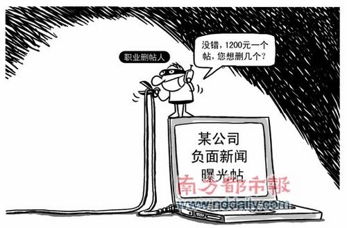 “論壇都有版主對網(wǎng)友發(fā)布的信息進行審核,而企業(yè)如果覺得帖子不真實,影響了企業(yè)的聲譽,可以通過與網(wǎng)站負責(zé)人接洽的方式來刪除或修改帖子,但職業(yè)刪帖人直接刪帖,則明顯傷害了發(fā)帖人的言論自由。